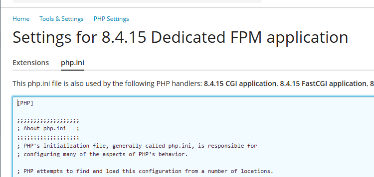 For each PHP version you want to turn the expose_php feature off, just click on one of the handlers and on the next screen click on php.ini tab. Note that PHP handlers for the same PHP version will share one php.ini file so you do not have to edit the file for each handler separately.
